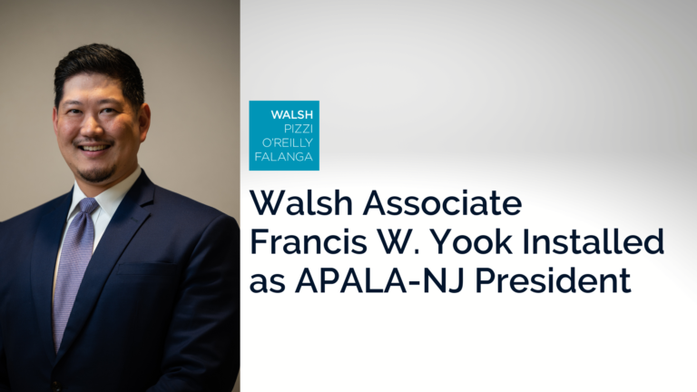 read moreNEWARK, N.J. – Walsh Pizzi O’Reilly Falanga LLP proudly announces that associate Francis W. Yook has been installed as President of the Asian Pacific American Lawyers Association of New Jersey,…